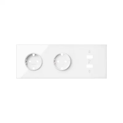 Кит на 3 поста, фронт: накладка на 2 розетки Schuko + 1 з/у 2xUSB белый глянец Simon 100, 10020308-130