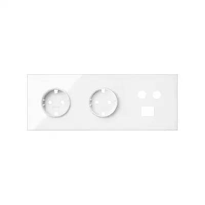 Кит на 3 поста, фронт: накладка на 2 розетки Schuko + 1 розетку TV + 1 розетку RJ45 белый глянец Simon 100, 10020303-130
