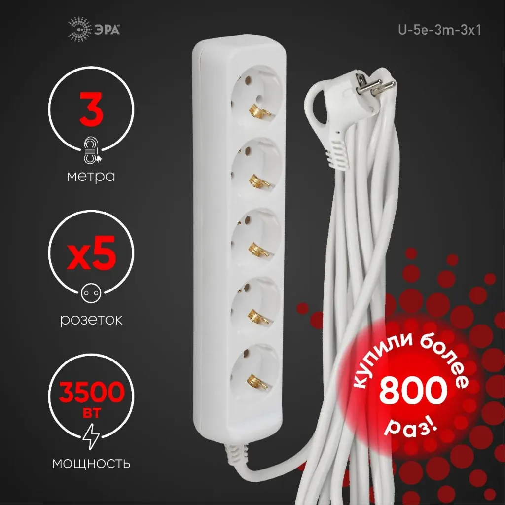 Удлинитель электрический Эра U-5es-5m-3x1 Б0028383