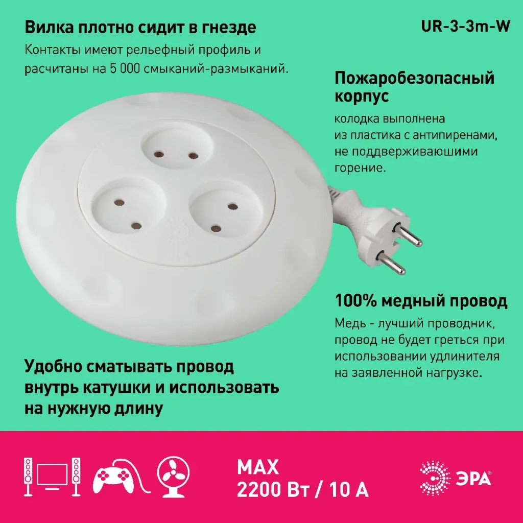 Удлинитель электрический Эра UR-3-3m-W Б0019038