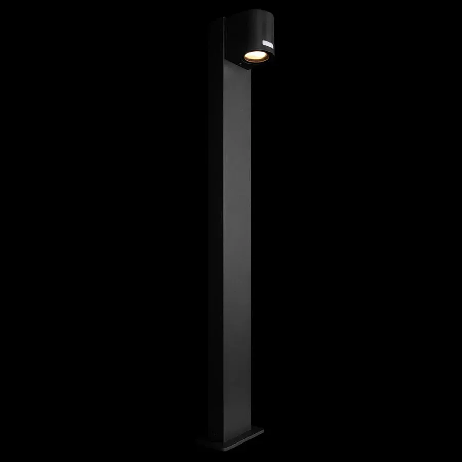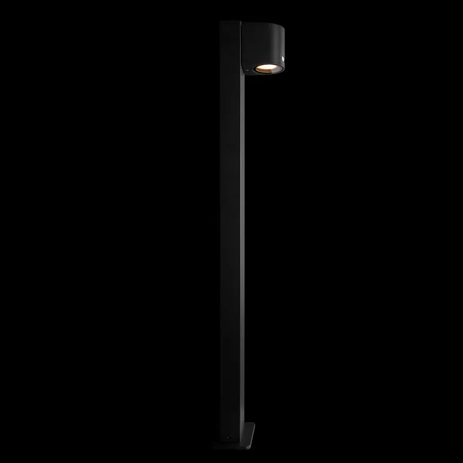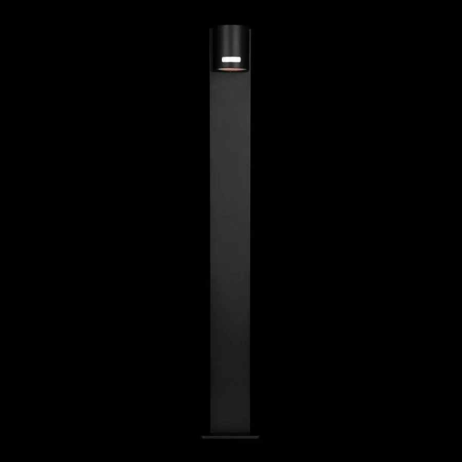 Уличный светильник черного цвета с длинной прямоугольной ножкой и цилиндрическим плафоном сверху Urban Minimalist
