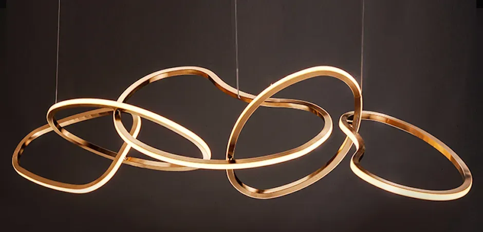 Люстра подвесная золотая в форме изогнутых колец Curved Rings