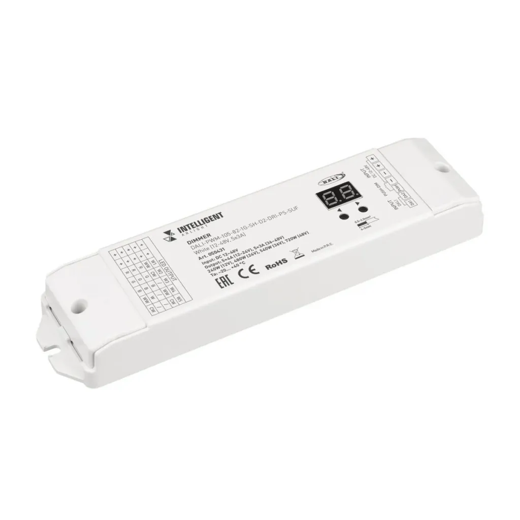 Универсальный 5-канальный диммер для светодиодной ленты Arlight DALI-PWM-105-82-1G-SH-D2-DRI-PS-SUF White (12-48V, 5x3A) (IARL, IP20 Пластик) 050431