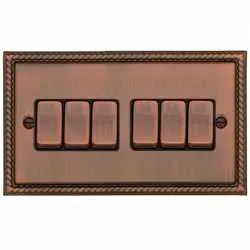 Возвратный шестиклавишный выключатель T&J Electric Colossal Античный муар CME2566-2-AC