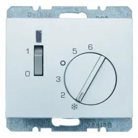 20307104 Регулятор температуры помещения с размыкающим контактом, центральной панелью, одноклавишным выключателем и светодиодом цвет: стальной, лак K.5 Berker