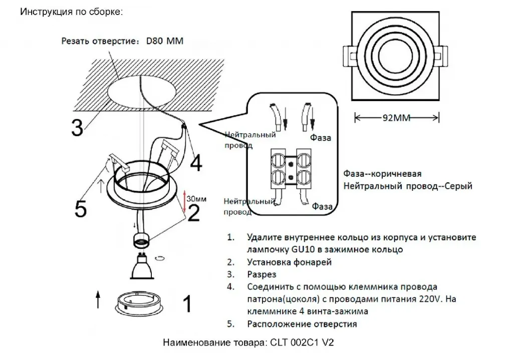 Встраиваемый светильник Crystal Lux CLT 001C1 BL V2