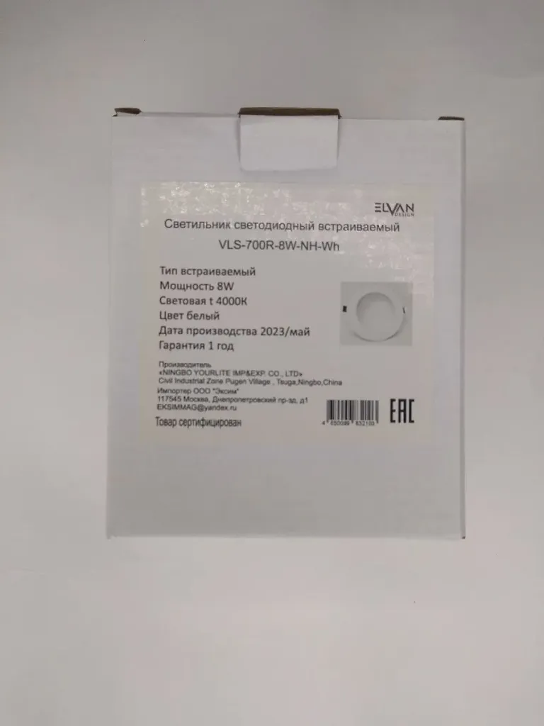 Встраиваемый светильник Elvan VLS-700R-8W-NH-Wh