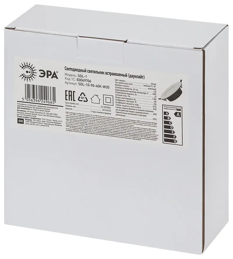 Встраиваемый светильник Эра SDL-10-90-40K-W20 Б0049706