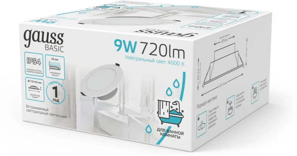 Встраиваемый светильник Gauss Basic Downlight 9033420209
