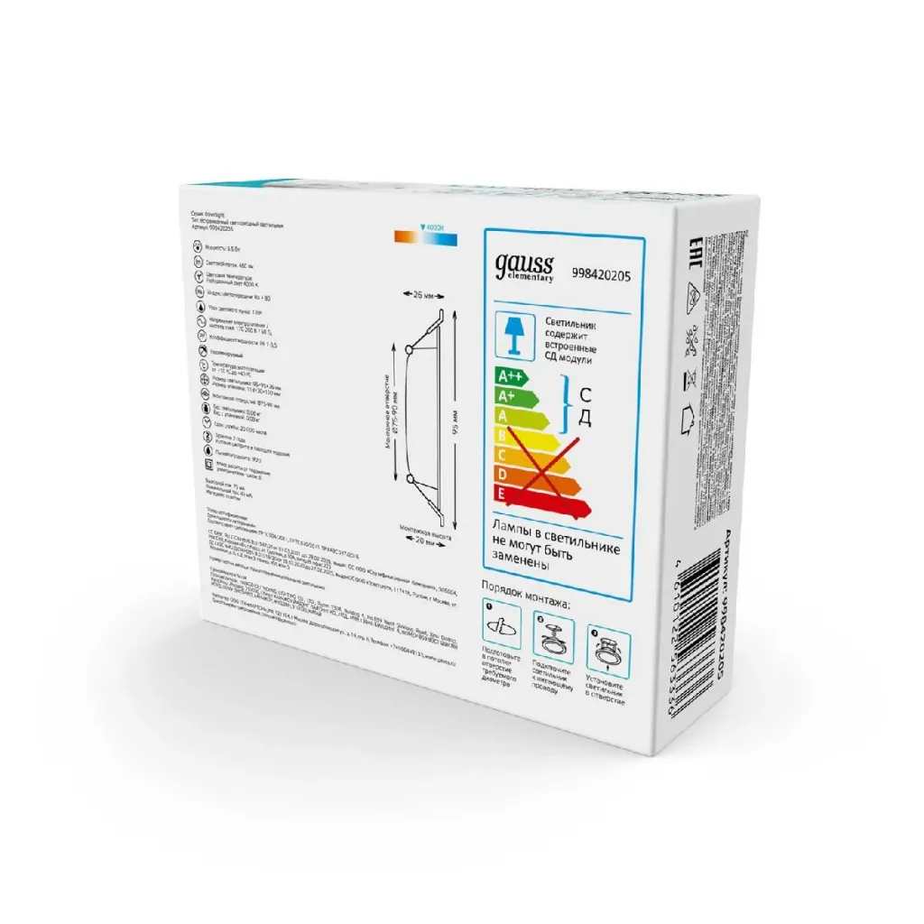 Встраиваемый светильник Gauss Elementary Downlight 998420209