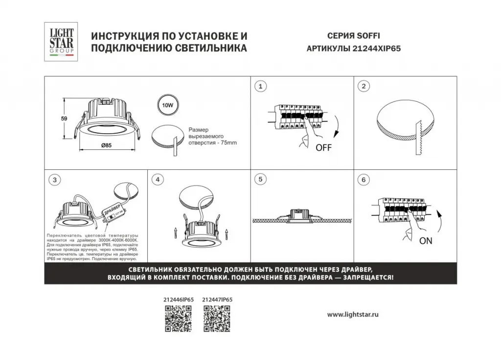 Встраиваемый светильник Lightstar Soffi IP65 212446IP65