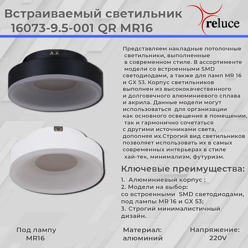 Точечный светильник Reluce 16073-9.5-001QR MR16 BK