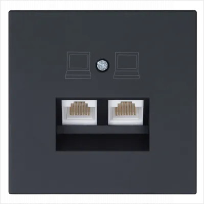 Интернет-розетка RJ45 двойная с накладкой, цвет Черный матовый (soft touch) Jasmart FD6106PBM