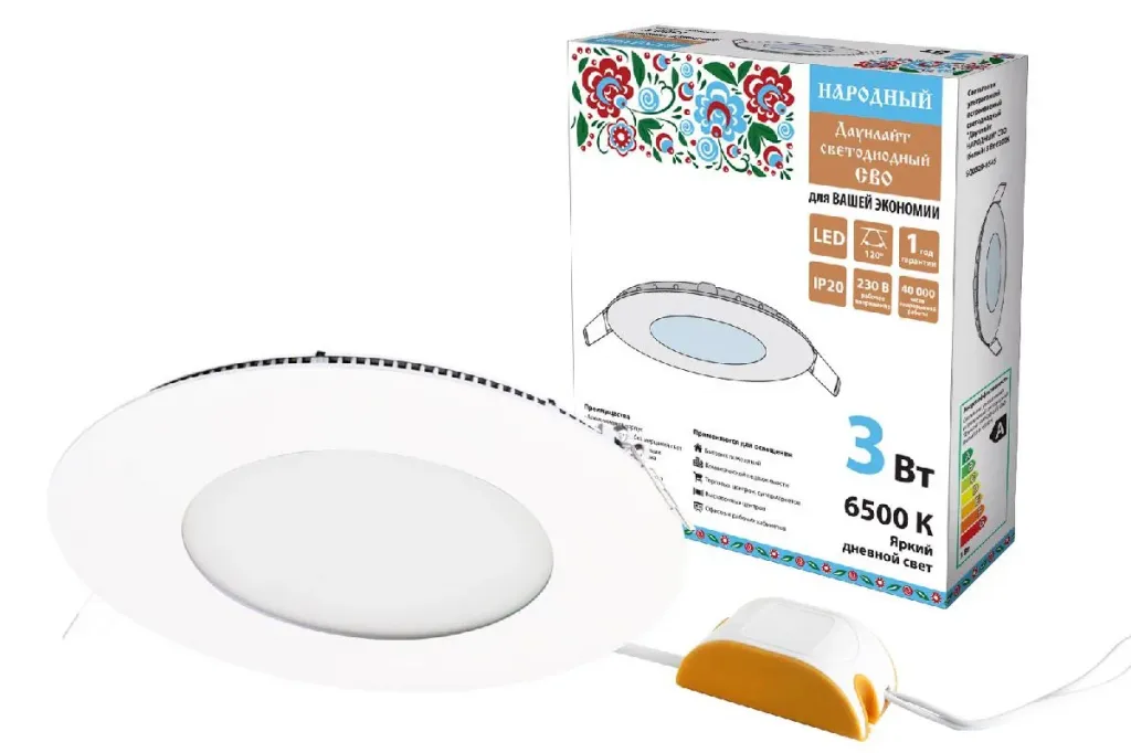 Встраиваемый светодиодный светильник Даунлайт Народный СВО SQ0329-0545