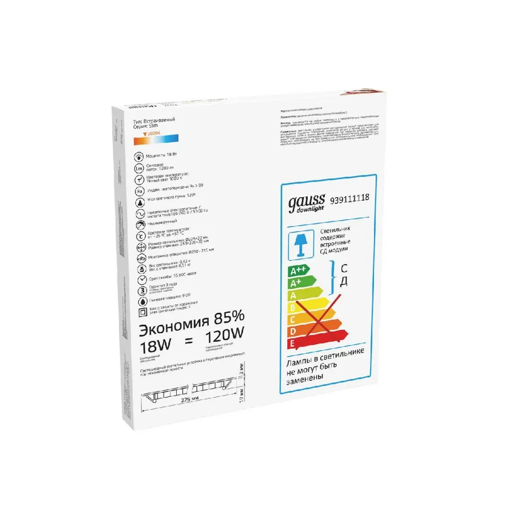 Встраиваемый светодиодный светильник Gauss 939111215
