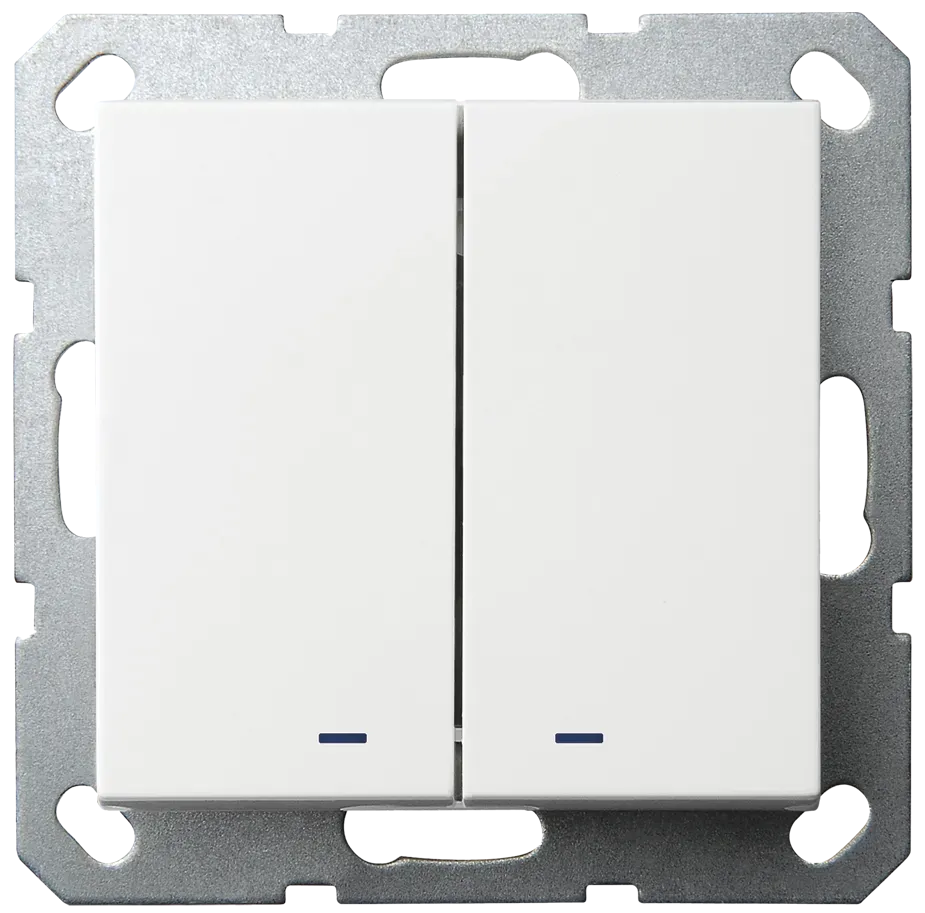 Выключатель двухклавишный перекрестный Jasmart со светодиодами с накладкой 10A 250V белый глянцевый G3023NW
