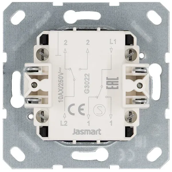 Выключатель двухклавишный проходной Jasmart 10A 250V с накладкой G3022T