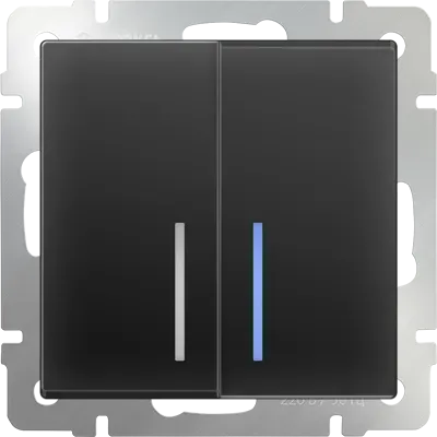 Выключатель двухклавишный проходной с подсветкой Werkel 10A/250В (из 2-х мест), черный матовый A051598