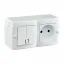 Выключатель одноклавишный + розетка с заземлением и крышкой Mono Electric Octans IP20 10А 250В белый 104-010101-183