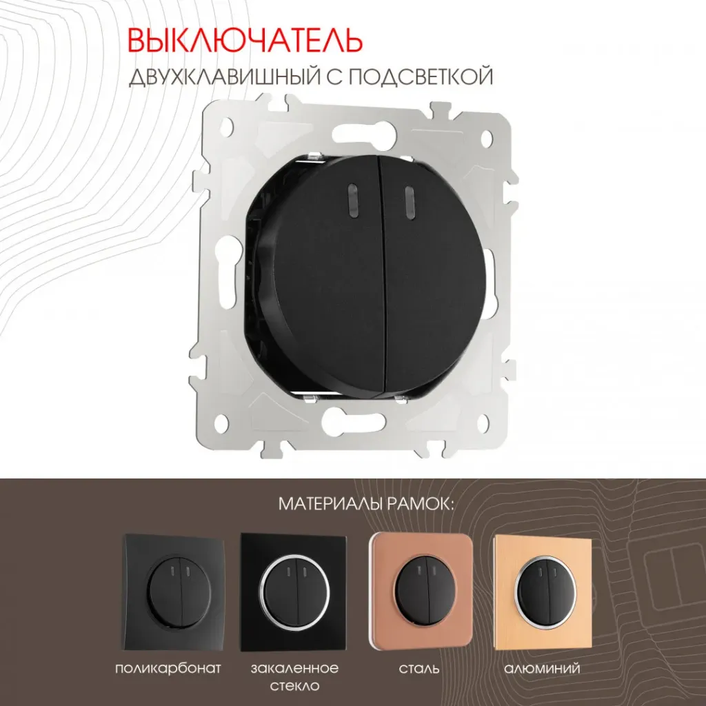 Выключатель двухклавишный с подсветкой Arte Milano 202.31-2.black