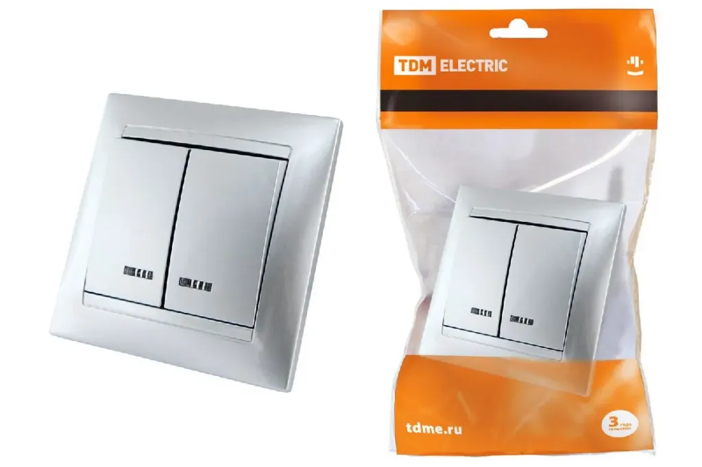 Выключатель двухклавишный с подсветкой Лама TDM Electric SQ1815-0005