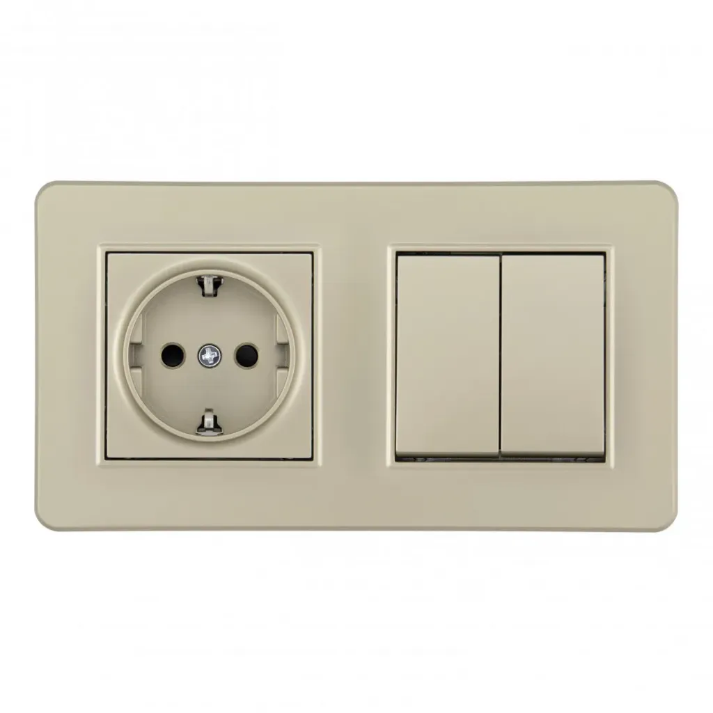 Выключатель двухклавишный с розеткой Arte Milano SET16-2-40-1-30-2 shampan