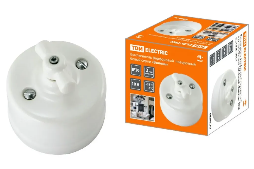 Выключатель фарфоровый поворотный с ручкой Болонь TDM Electric SQ1820-0310