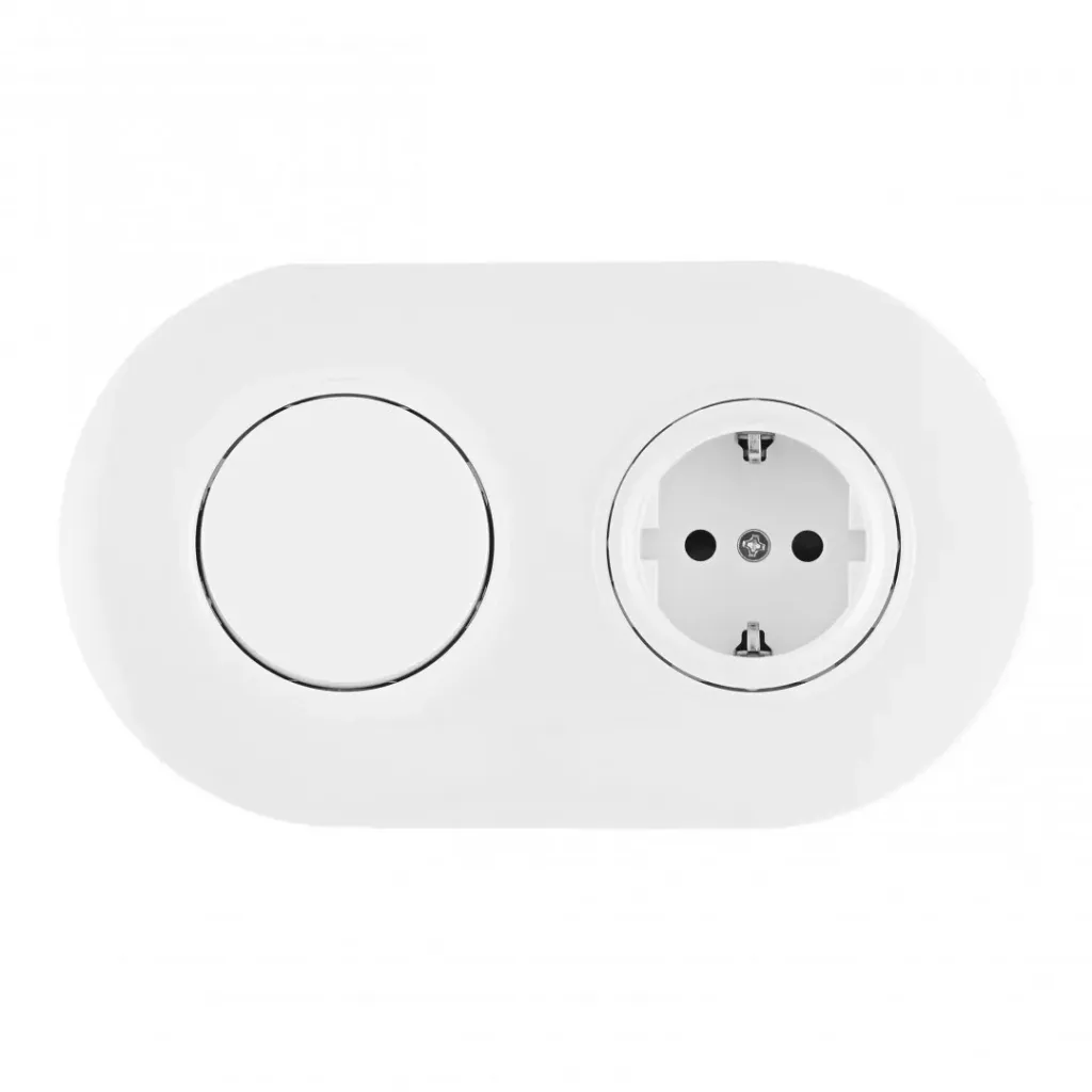 Выключатель круглый одноклавишный с розеткой с/з и шторками Arte Milano SET08-2-40-1-30-1 white