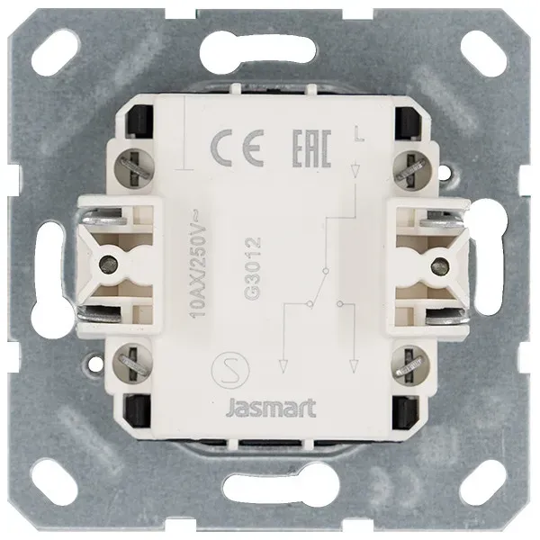 Выключатель одноклавишный проходной Jasmart 10A 250V с накладкой G3012T