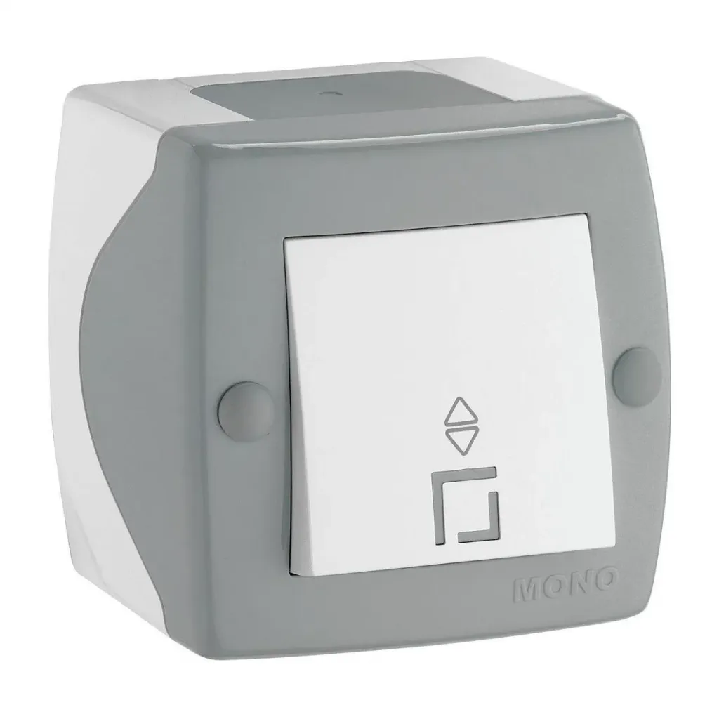 Выключатель одноклавишный проходной Mono Electric Octans IP20 10А 250В бело-серый 104-020001-109