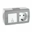 Выключатель двухклавишный + розетка с заземлением и крышкой Mono Electric Octans IP20 10А 250В бело-серый 104-020001-187