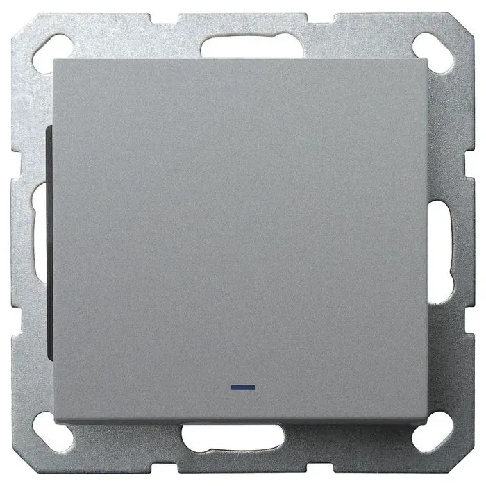 Выключатель со светодиодом одноклавишный Jasmart в комплекте с накладкой 10A 250V цвет алюминий G3011NS