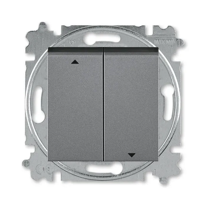 Выключатель управления жалюзи кнопочный ABB Levit, сталь-дымчатый чёрный 2CHH598845A6069