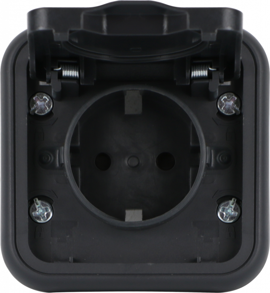 Розетка электрическая с заземлением и крышкой Donel W55 скрытой установки 16 AX, IP55, безвинтовой зажим, антрацит DIP18800+DIP62028