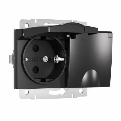Розетка влагозащищенная с заземлением с защитной крышкой и шторками Werkel 10A/250В, винтовой зажим, черный матовый A069582