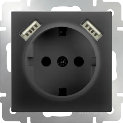 Розетка с заземлением шторками и USBх2 Werkel 16A/250В, винтовой зажим, черный матовый A051617