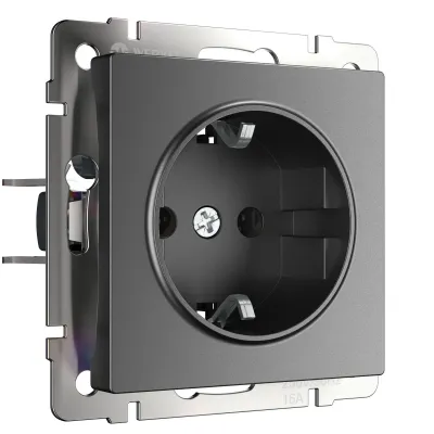Розетка с заземлением Werkel 16A/250В, винтовой зажим, графит матовый A063103