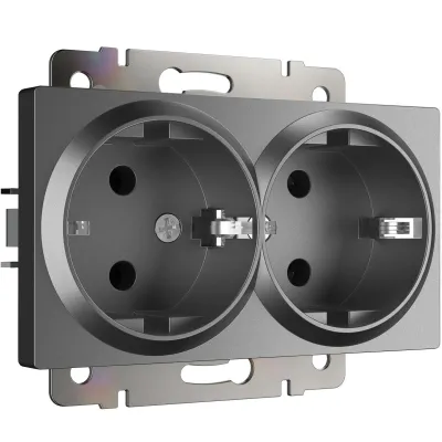 Розетка двойная с заземлением Werkel 16A/250В, винтовой зажим, графит матовый A063107