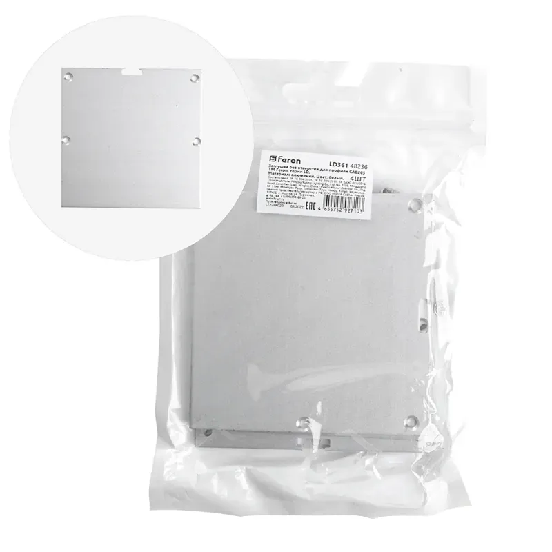 Заглушка без отверстия для профиля CAB265 (комплект 4шт) Feron LD361 48236
