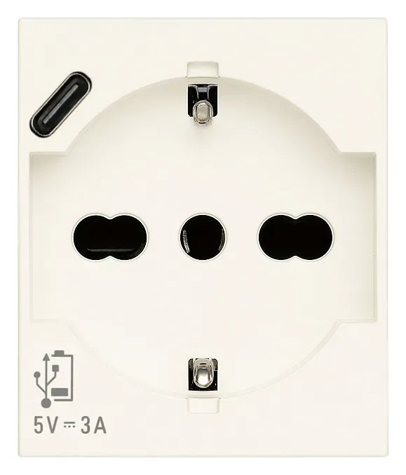 Зарядка USB C 3.0А с электрической розеткой Linea, USB type-C 5V, одинарная белый матовый Vimar Linea 30210.USBB